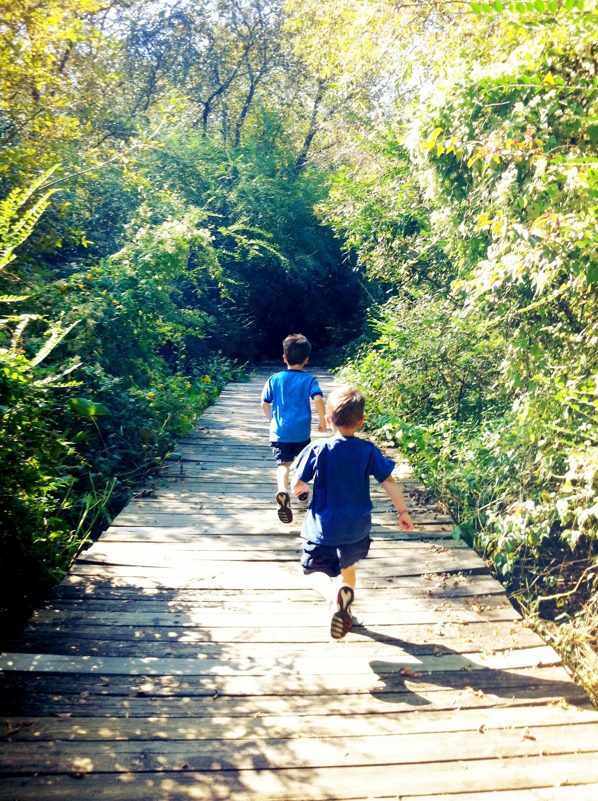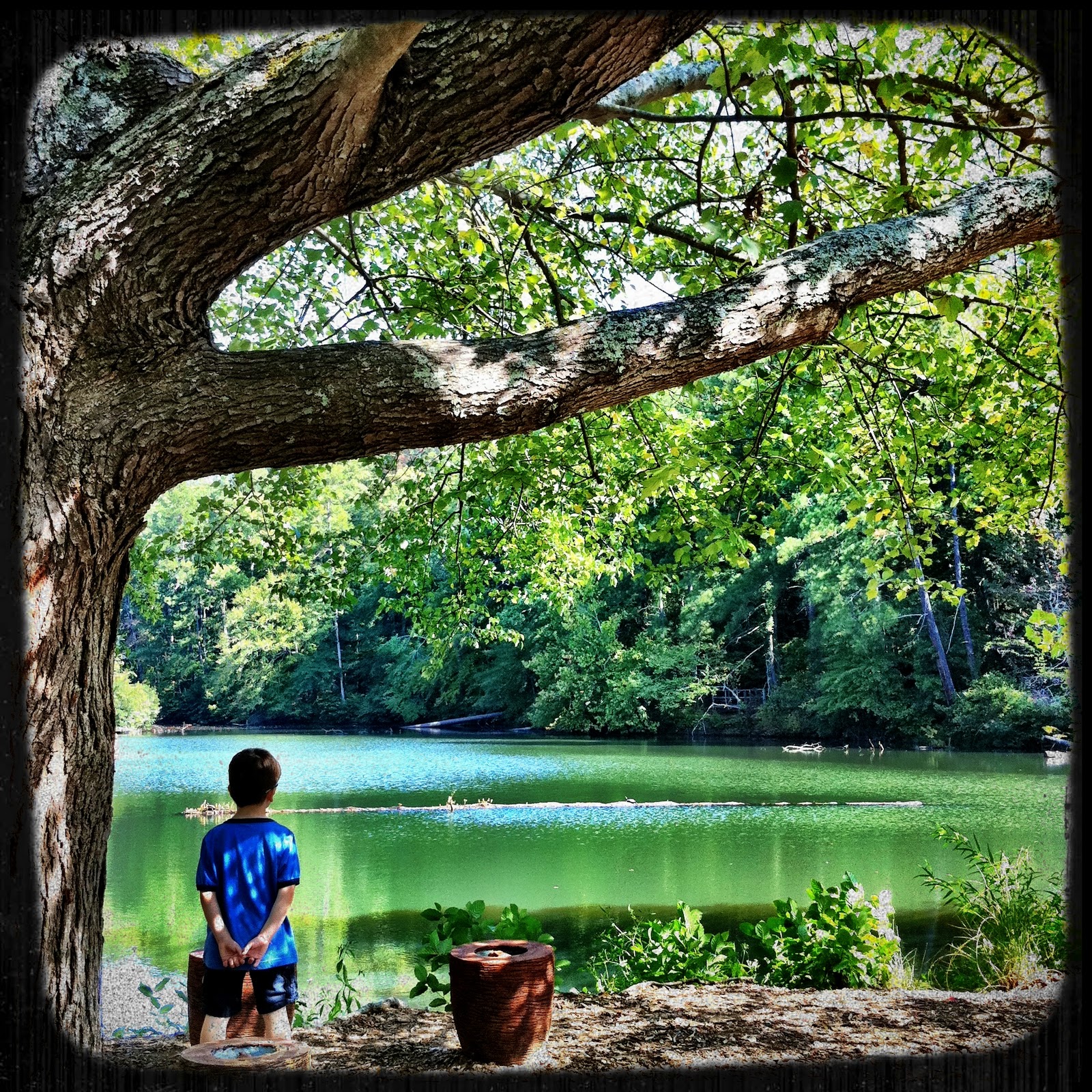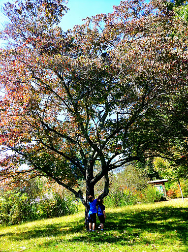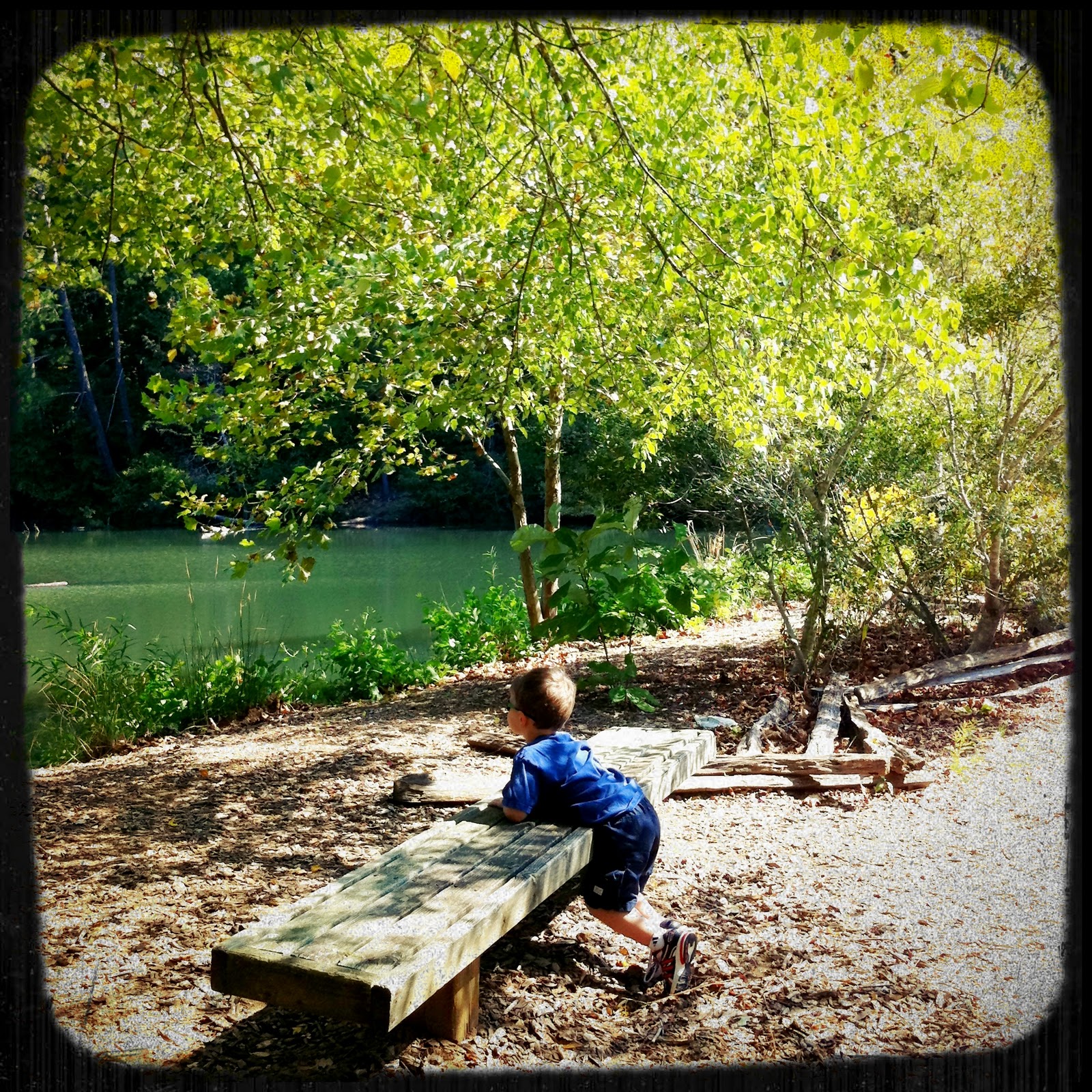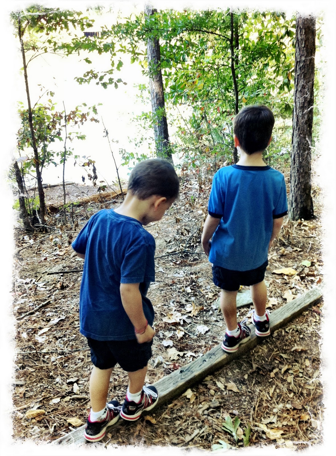 We got out of the car and felt the breeze mixing with the sunshine, and the sound of the leaves dancing and the water glistening and reflecting the blue sky…when the serenity of the moment was broken by my 5 yr. old saying, “Daddy, look! The trees are dropping their leaves so that they can be necked!” “Naked?” he replied. “Yeah, necked! That’s what mommy said.”