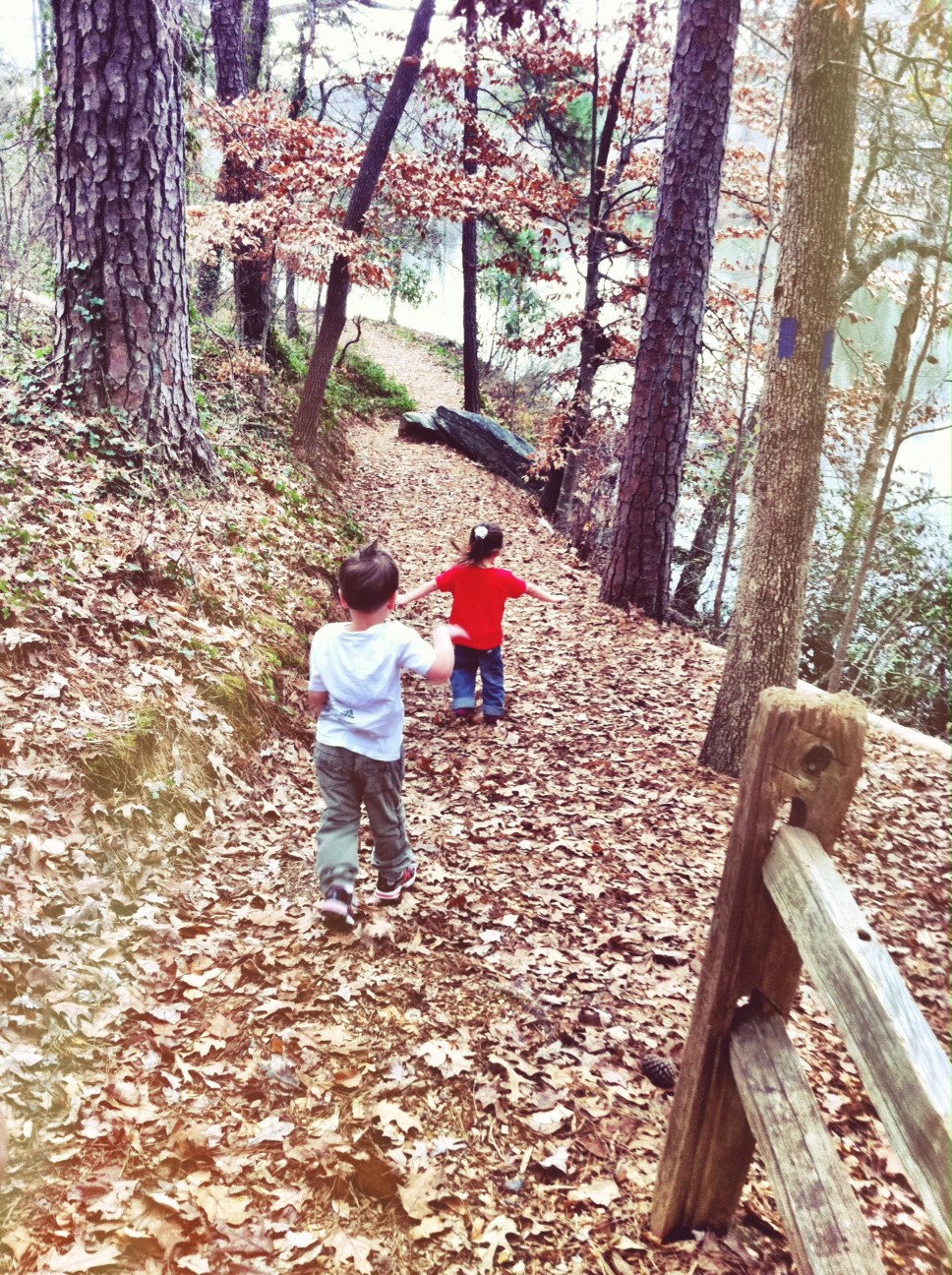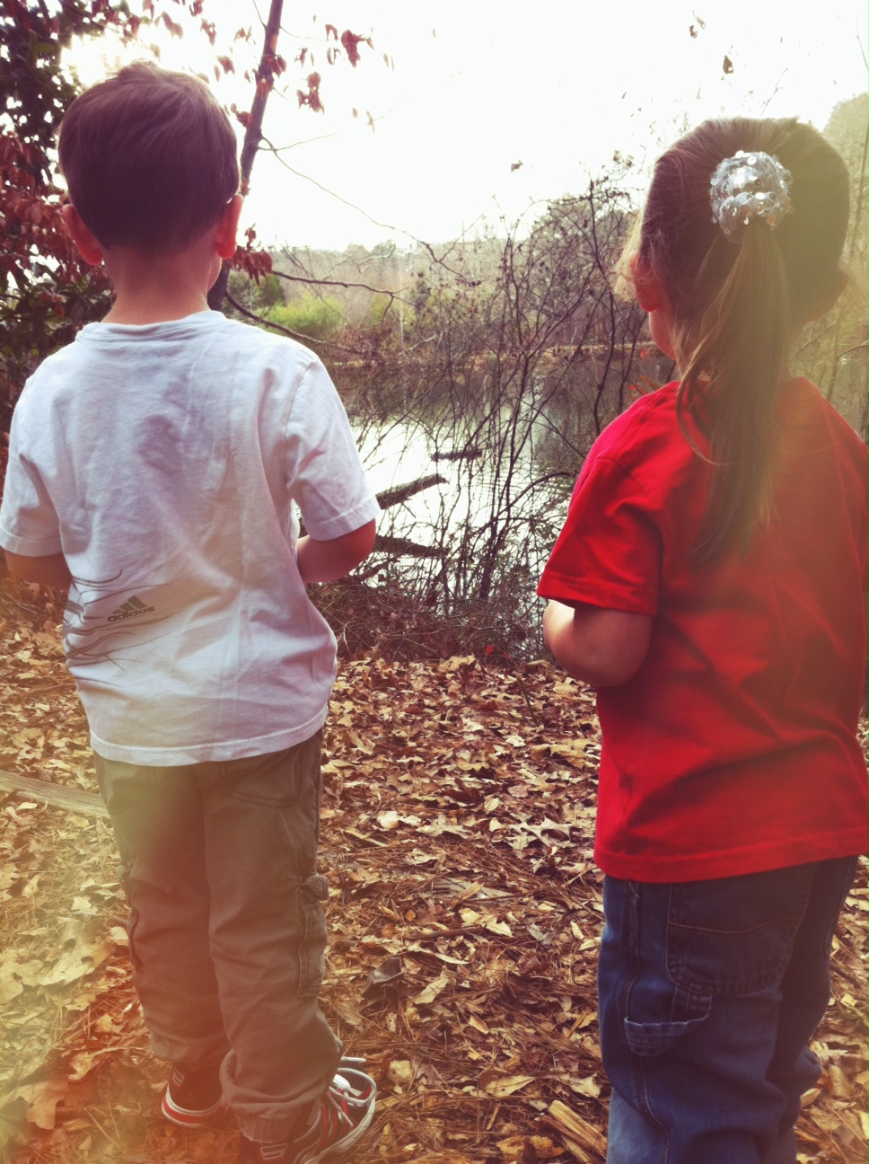 I watched them look in amazement at all the different creatures along our path. The dirt was even fascinating to their young minds. Their imaginations were taking them to far off places with invisible swords and maidens in distress. Where the good guy always wins and rides off with the girl.