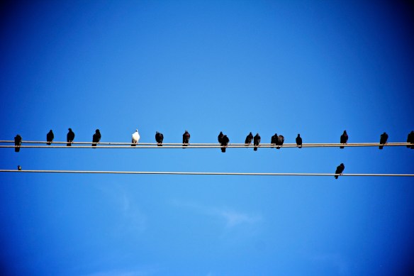 This third picture is one of my favorites of the dove on the wire with the crows.